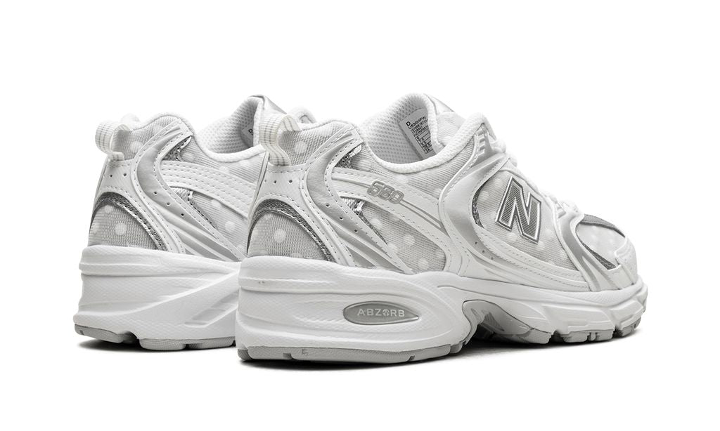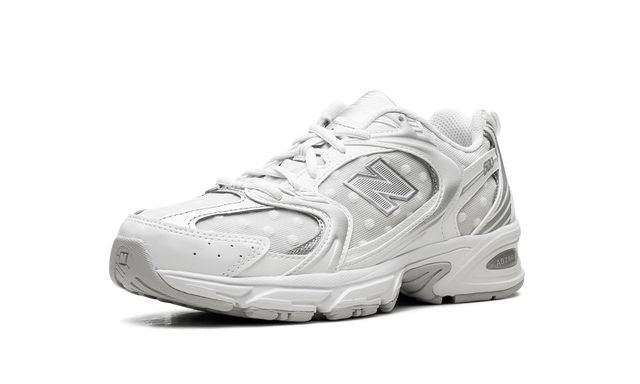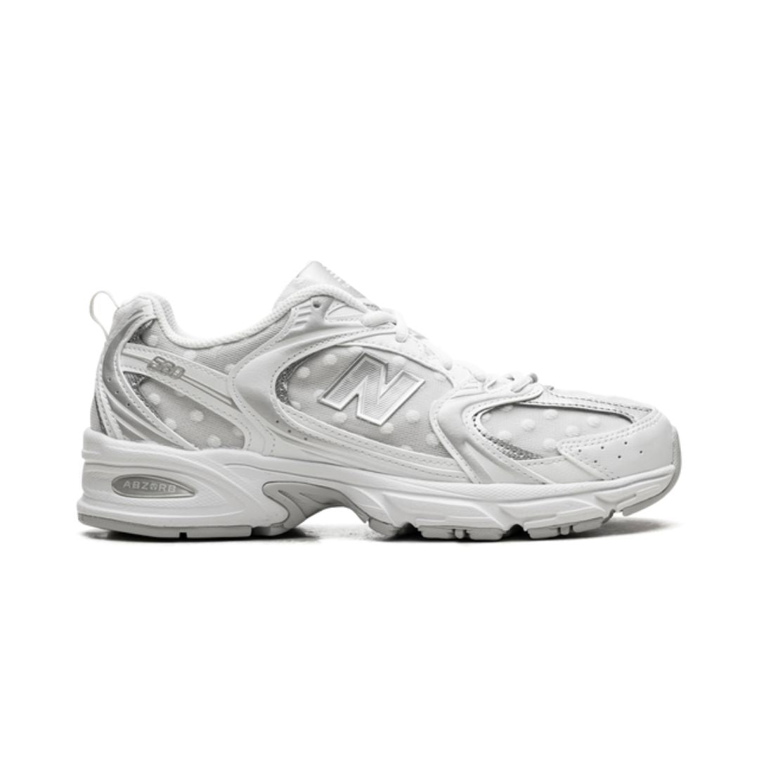 The New Balance 530 Silver Metallic Polka Dots is a bold and stylish version of the classic 530 model, bringing a modern and innovative touch to the retro aesthetic of 2000s running shoes. design.