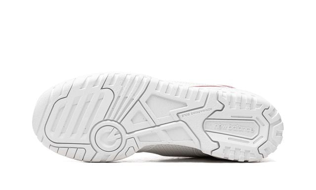 The New Balance 550 "Red Rouge" brings a striking look full of personality, combining the retro design of the 80s with a modern touch. Its white premium leather upper is highlighted with details in vibrant red, which add a bold and stylish contrast.
