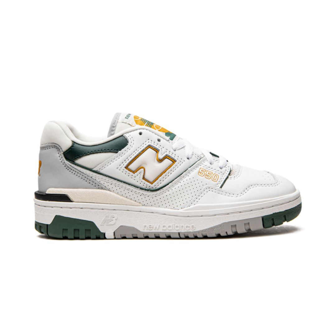 The New Balance 550 "White Nightwatch Green" brings a sophisticated and sporty look, combining the classic style of the 550 model with a touch of elegance. The white base, made from premium leather, offers a clean and versatile appearance, while Nightwatch Green, a deep shade of green, is used on the details, such as the "N" logo and sole, creating a subtle and sophisticated contrast.