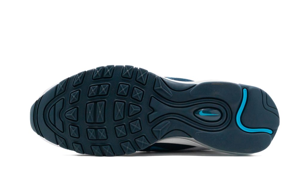 The Nike Air Max 97 "White Nightshade Spirit Teal" brings a sophisticated combination of vibrant and neutral tones, maintaining the iconic design inspired by water ripples. This model balances elegance and boldness, ideal for those looking for a stylish and versatile sneaker.