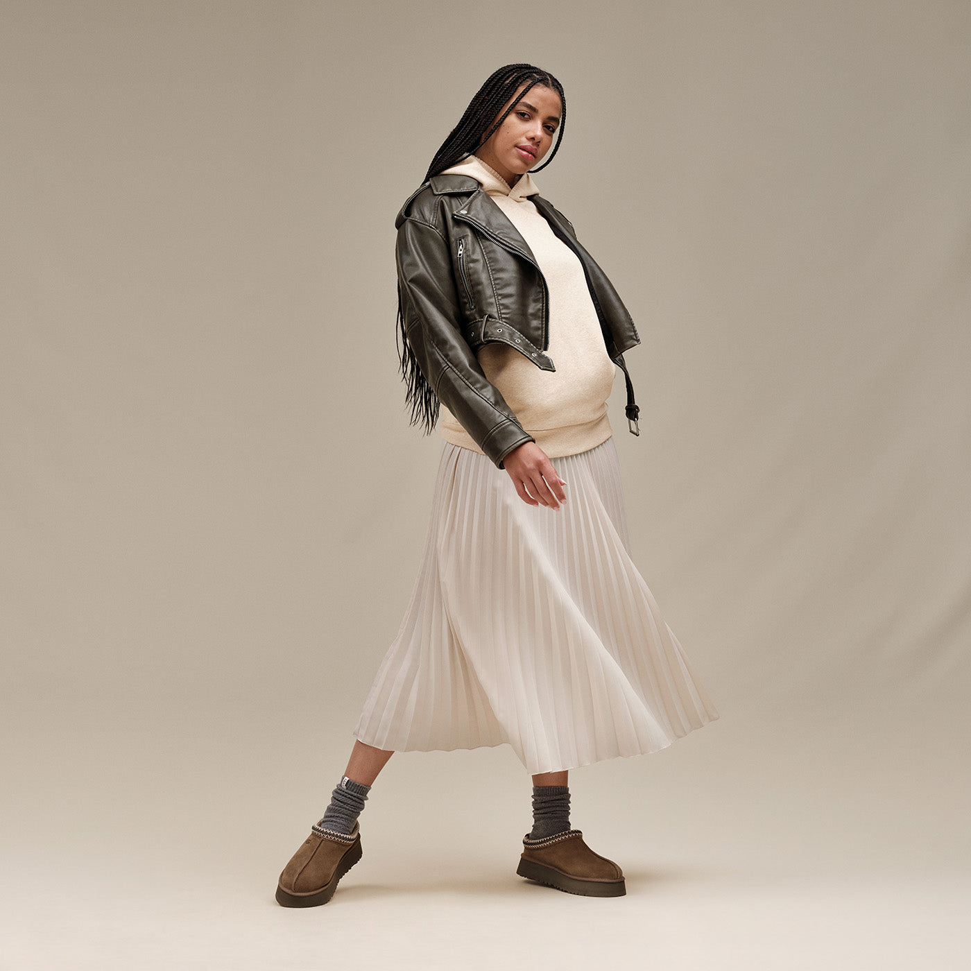 - UGG® Tasman braid (70% recycled polyester, 30% rayon)